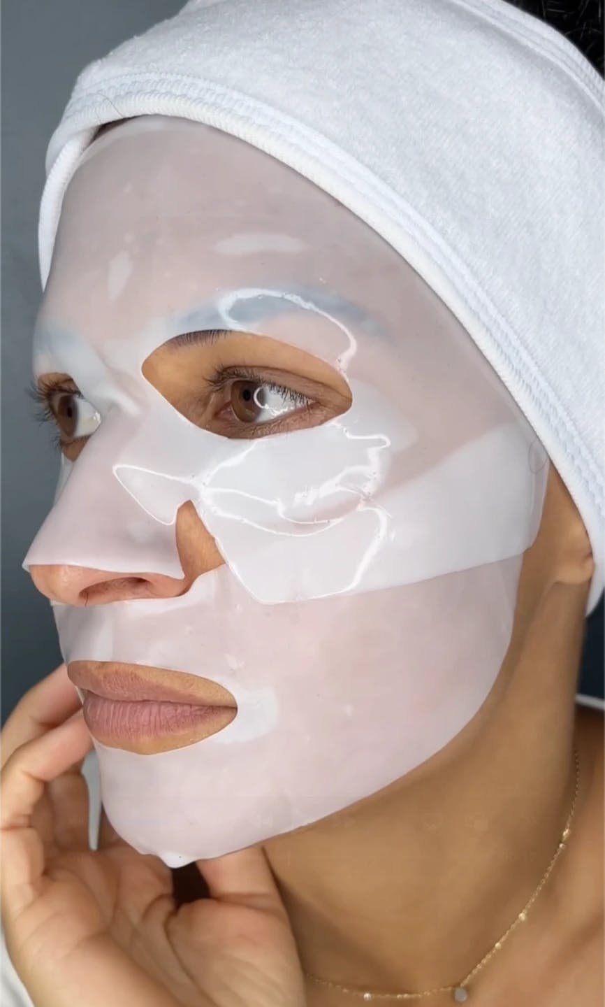Un masque hydrogel intensément imbibé qui épouse parfaitement la peau comme une "seconde peau", pour une absorption maximale des actifs.